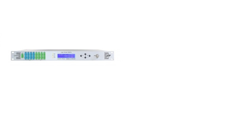 Beépített WDM-el rendelkező 8 kimenetű optikai erősítő (EDFA), +19 dBm kimeneti teljesítménnyel, PON hálózatokhoz